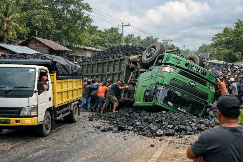 Truk berwarna hijau dengan nomor polisi B 9083 WYU tersebut diketahui mengangkut batubara dengan tujuan pengiriman ke Pulau Jawa. Kendaraan berat itu dihentikan warga karena dinilai melanggar ketentuan pengangkutan batubara yang seharusnya tidak melintasi jalur darat umum.